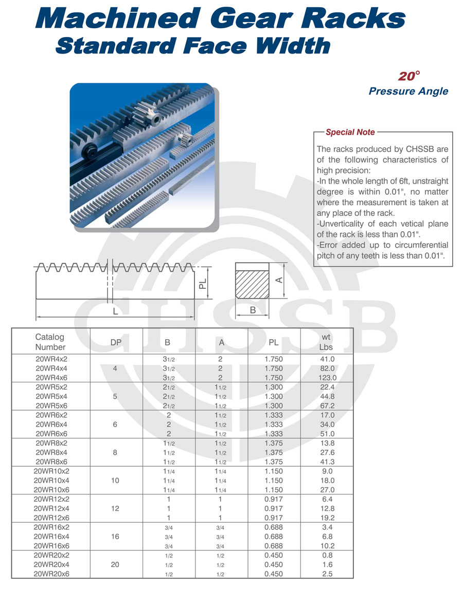 產品范圍: 美標:(14 1/2°/20°) 歐標:(Mod.1-6) 英制尺寸產品(適用于美標市場) 公制尺寸產品(適用于歐標市場) 斜齒條 圓齒條 斜齒齒條 圓齒齒條 SB型齒條 直齒條、牙條、工業齒條、正齒條